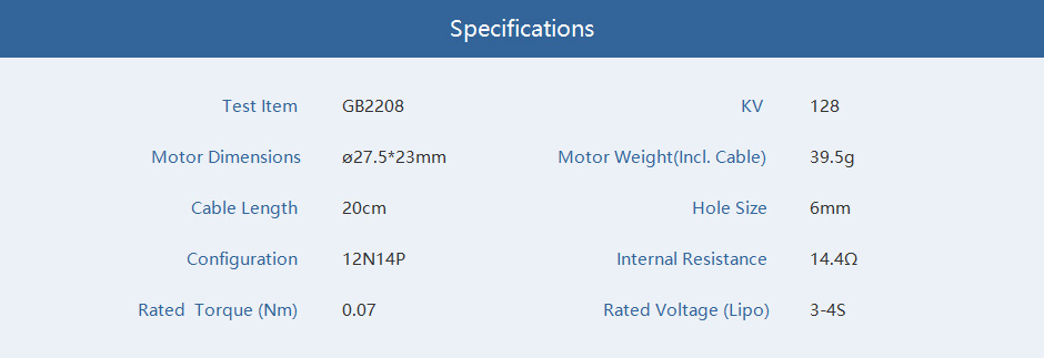 T-Motor GB2208 Gimbal Type 3-4S UAV Drone Motor KV128