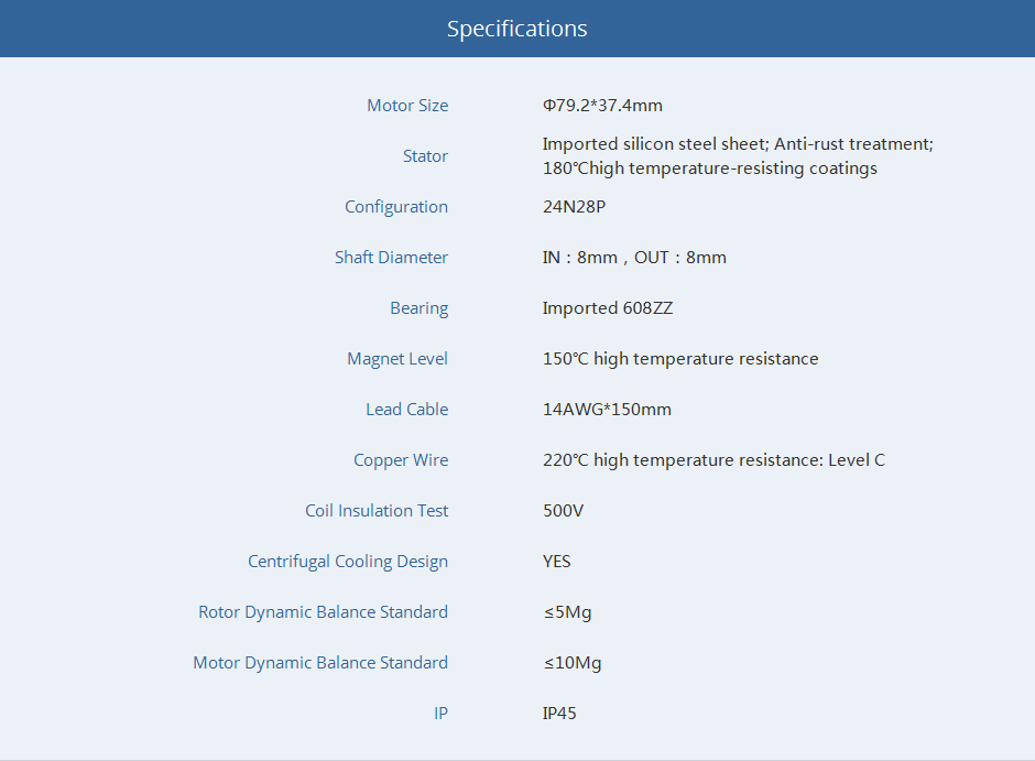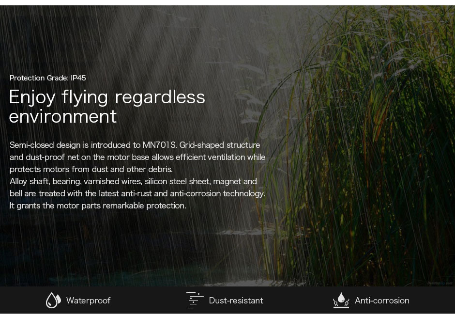 • Max. thrust up to 9.1kg • Thrust/weight ratio: 36 • High protection level IP56