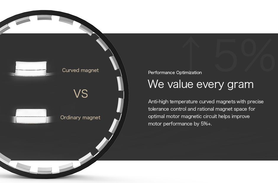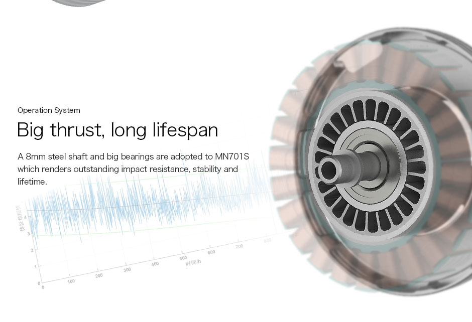 • 5% longer flight time • Max. Thrust 10.6KG • Motor service life-- 1500 flights (40mins/flight)