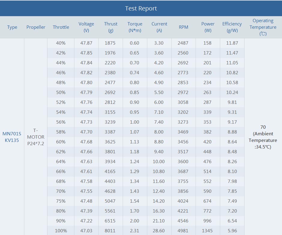 1. Max. thrust :2.85kg 2. Recommendation: T-MOTOR CF15*5/CF16*5.4" prop  3. MTBF:About 1600hours 4. Motor Maintenance:Regularly lubricate bearings to reduce friction and wear 5. Features:Industrial Grade, Waterproof, dustproof, low noise, large bearings