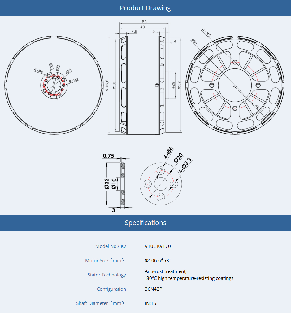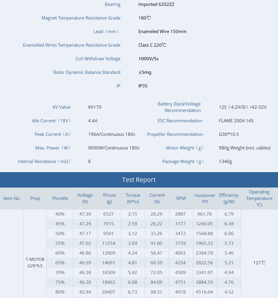 T-Motor V10L KV170 12S Brushless Vtol Drone Motor